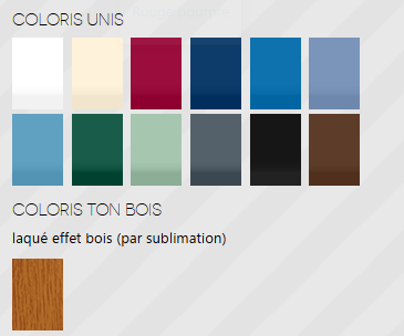 > Couleur laquage au choix ou finition lasure ton bois